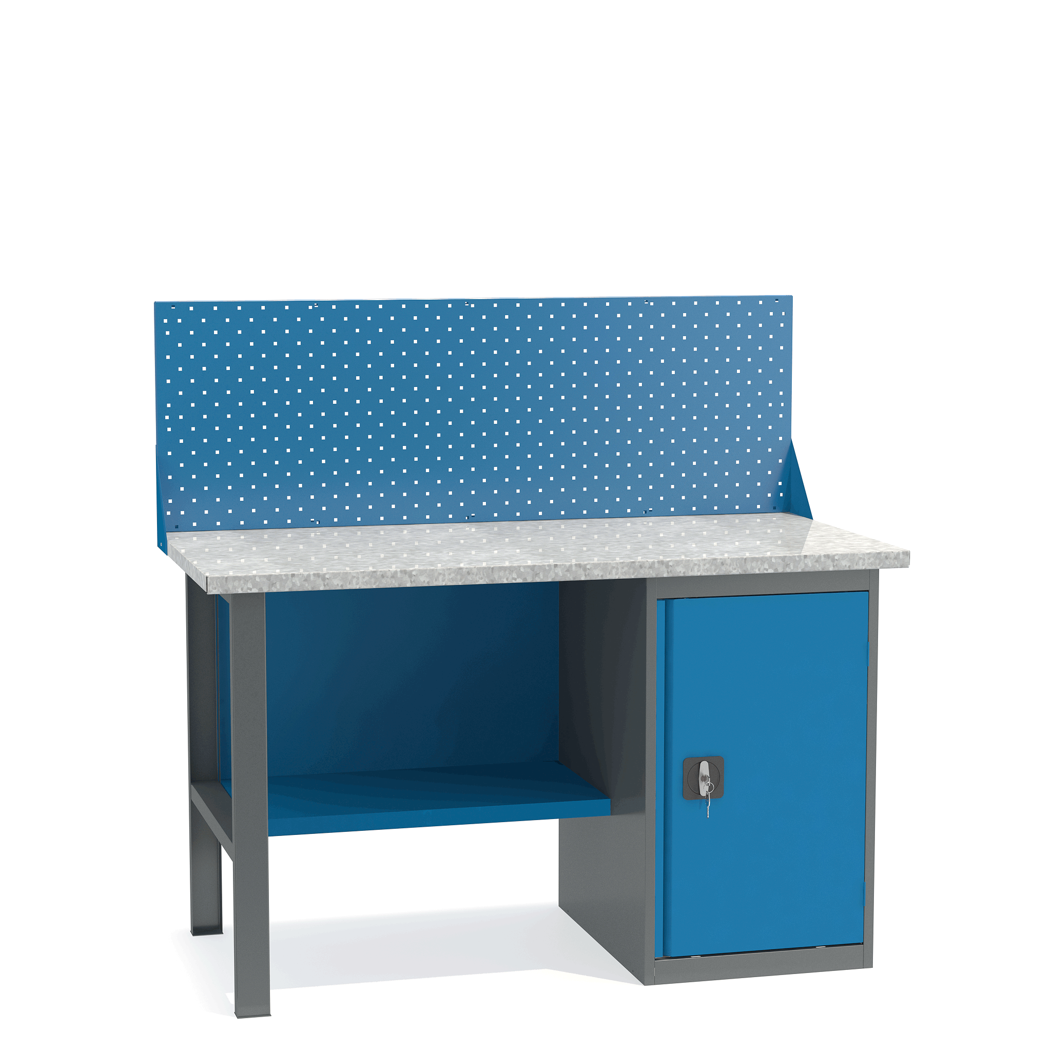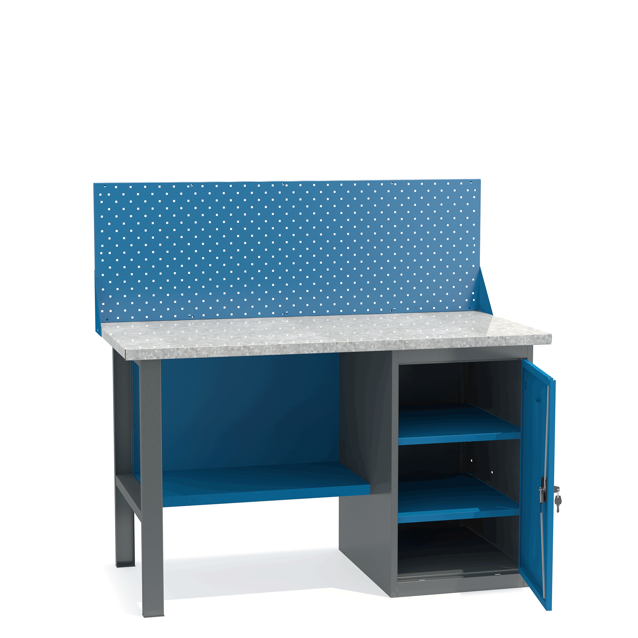 - Верстак имеет надежную модульную конструкцию с усиленной столешницей (плита МДФ 25мм, покрытая листом оцинкованного металла).