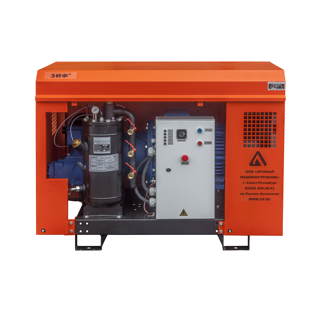 Электрические станции ЗИФ-СВЭ без кожуха могут быть полезны, когда размещение компрессора в производственном помещении по различным причинам невозможно или неудобно.