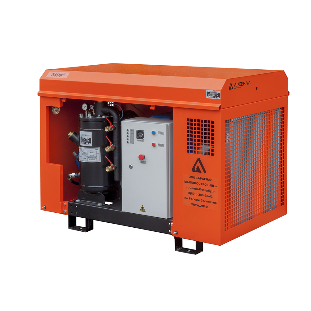 Электрические станции ЗИФ-СВЭ без кожуха могут быть полезны, когда размещение компрессора в производственном помещении по различным причинам невозможно или неудобно.